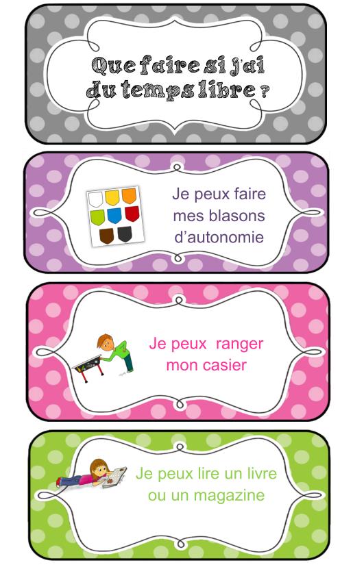 Voici un petit affichage sympa pour aider les élèves à gérer leur temps en autonomie.