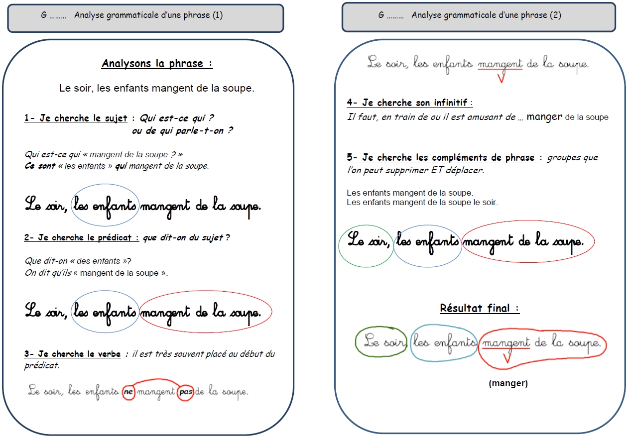 Voici une leçon sur l'analyse grammaticale niveau 1 en plusieurs versions.